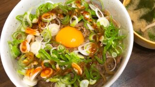 ネギたま牛丼が好きな人必見!!ぜひ真似してみてください。