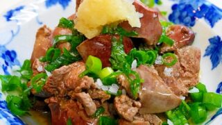 肉 余熱で茹でてフワフワ!低温鶏レバーのネギ塩ごま油