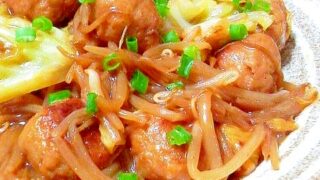 肉 節約☆冷凍肉団子とキャベツ♪もやしのトロミあん炒め