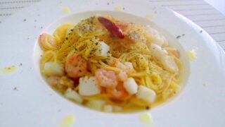 生姜と醤油の和風味のあさりのパスタ、ボンゴレビアンコです。