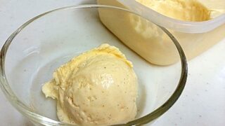 牛乳を使わず、生クリームをホイップしてふわふわの濃厚なバニラアイスに仕上げました。