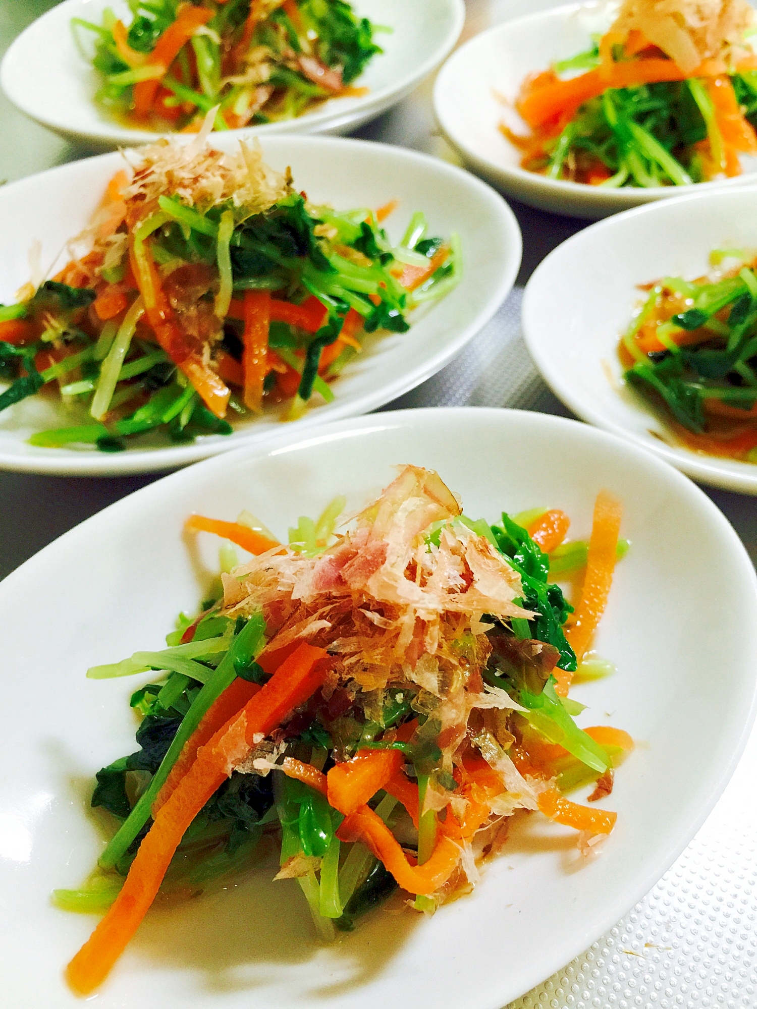 簡単ちょいおかず☆豆苗とにんじんの鰹ポン酢かけ 健康料理 Twitter Facebook はてブ Pocket LINE コピー 2022.03.08 茹でておかかとポン酢をかけるだけ!だけどシャキシャキの歯ごたえがたまらなくクセになる~!子供も喜んで食べてくれる簡単節約メニューです。 レシピはこちら (楽天レシピ) 5分以内 100円以下 目次 材料みんなのレビュー 材料 豆苗にんじんかつお節ポン酢塩 みんなのレビュー