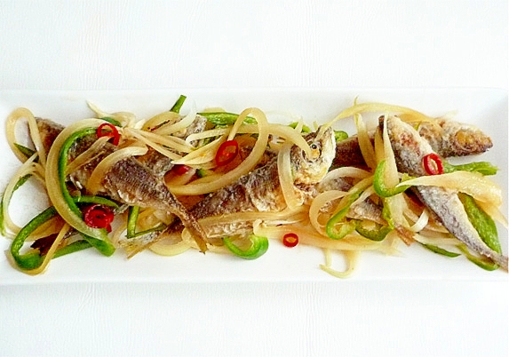 骨まで美味しい、豆あじで作る南蛮漬けです。
