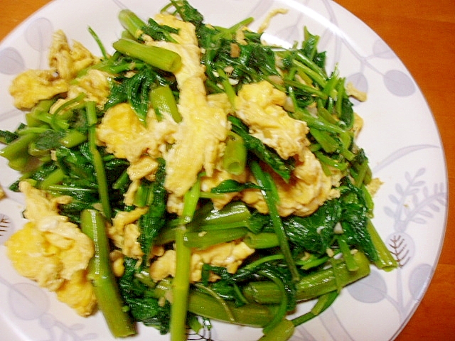 栄養満点!空芯菜と卵の中華炒め 野菜 Twitter Facebook はてブ Pocket LINE コピー 2023.10.02 ほうれん草より栄養豊富な空芯菜を彩りのいい炒め物にしました。 緑黄色野菜なので油との相性がいいです。 レシピはこちら (楽天レシピ) 約15分 300円前後 目次 材料みんなのレビュー 材料 空芯菜卵しょうがにんにくサラダ油ごま油鶏がらスープの素(粉末)塩・こしょう みんなのレビュー