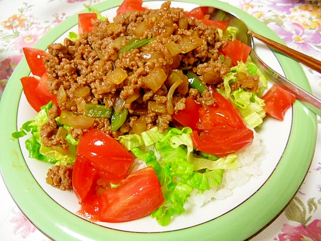 初心者でも簡単うまいお店風! タコライス ご飯もの Twitter Facebook はてブ Pocket LINE コピー 2023.10.17 フライパン一つで簡単! 野菜たっぷりでヘルシーに美味しいです 好みでタバスコかけます レシピはこちら (楽天レシピ) 指定なし 指定なし 目次 材料みんなのレビュー 材料 合いびき肉たまねぎピーマンおろしにんにく、しょうがケチャップソース、醤油、酒塩コショウ、ナツメグトマトレタスごはん みんなのレビュー