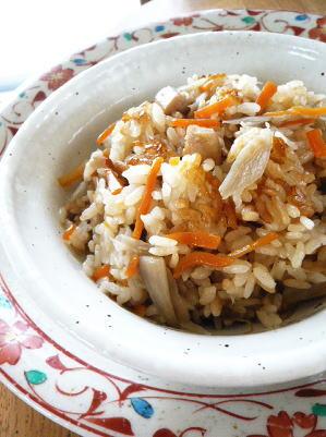 鶏にごぼうに、ごま油でキンピラ風に炒めて、旨味をとじこめて炊き上げるので風味がよいです♪