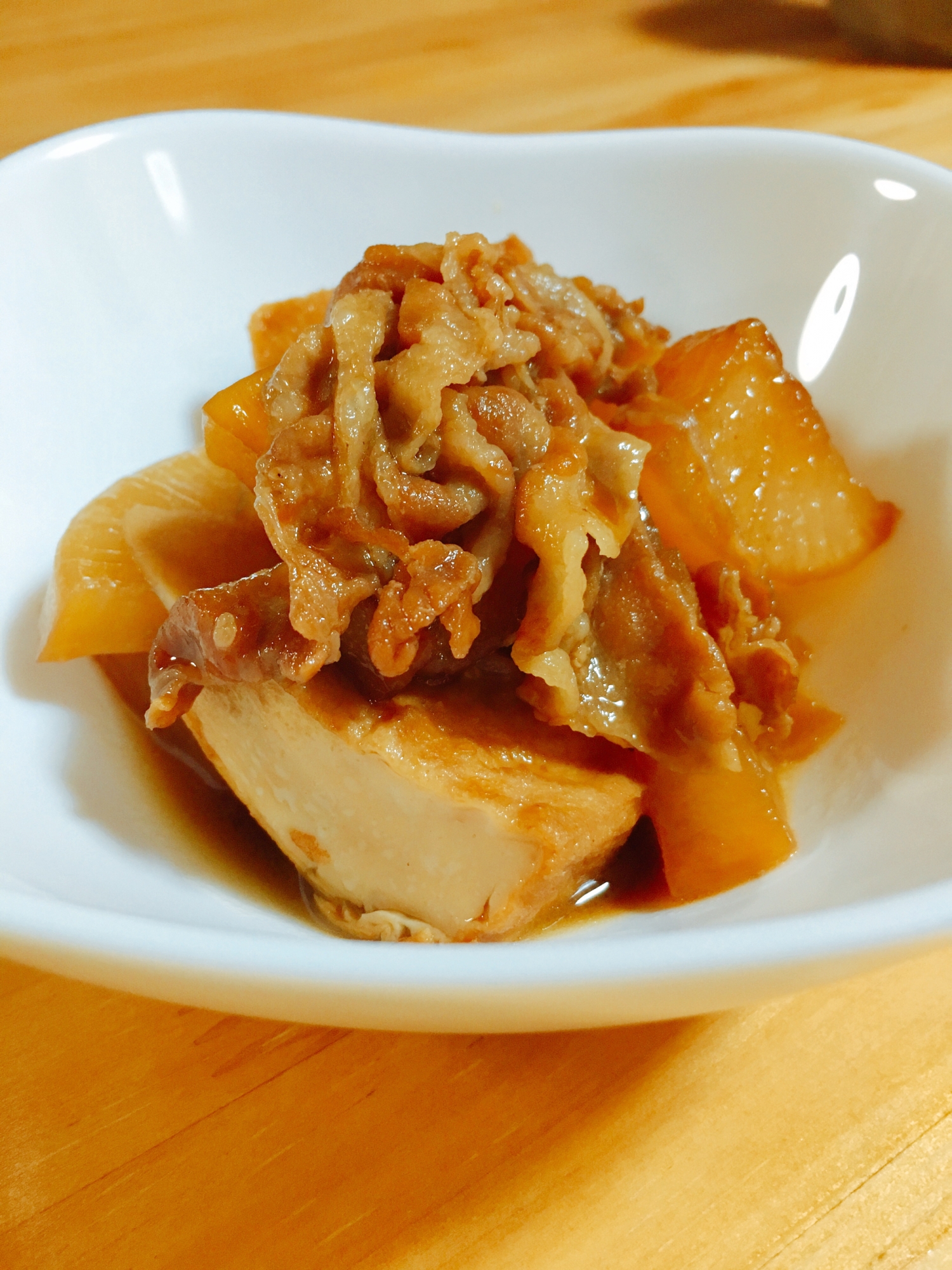 こってり、厚揚げと大根と豚バラ肉の煮物
