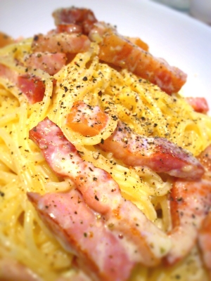 イタリアンのシェフ直伝!でも簡単!!カルボナーラ パスタ Twitter Facebook はてブ Pocket LINE コピー 2023.03.24 誰が作っても失敗が無く、とても美味しくリストランテwの味がでます。 レシピはこちら (楽天レシピ) 約10分 300円前後 目次 材料みんなのレビュー 材料 スパゲッティー生クリームパルメジャンチーズベーコン卵黄塩、胡椒 みんなのレビュー