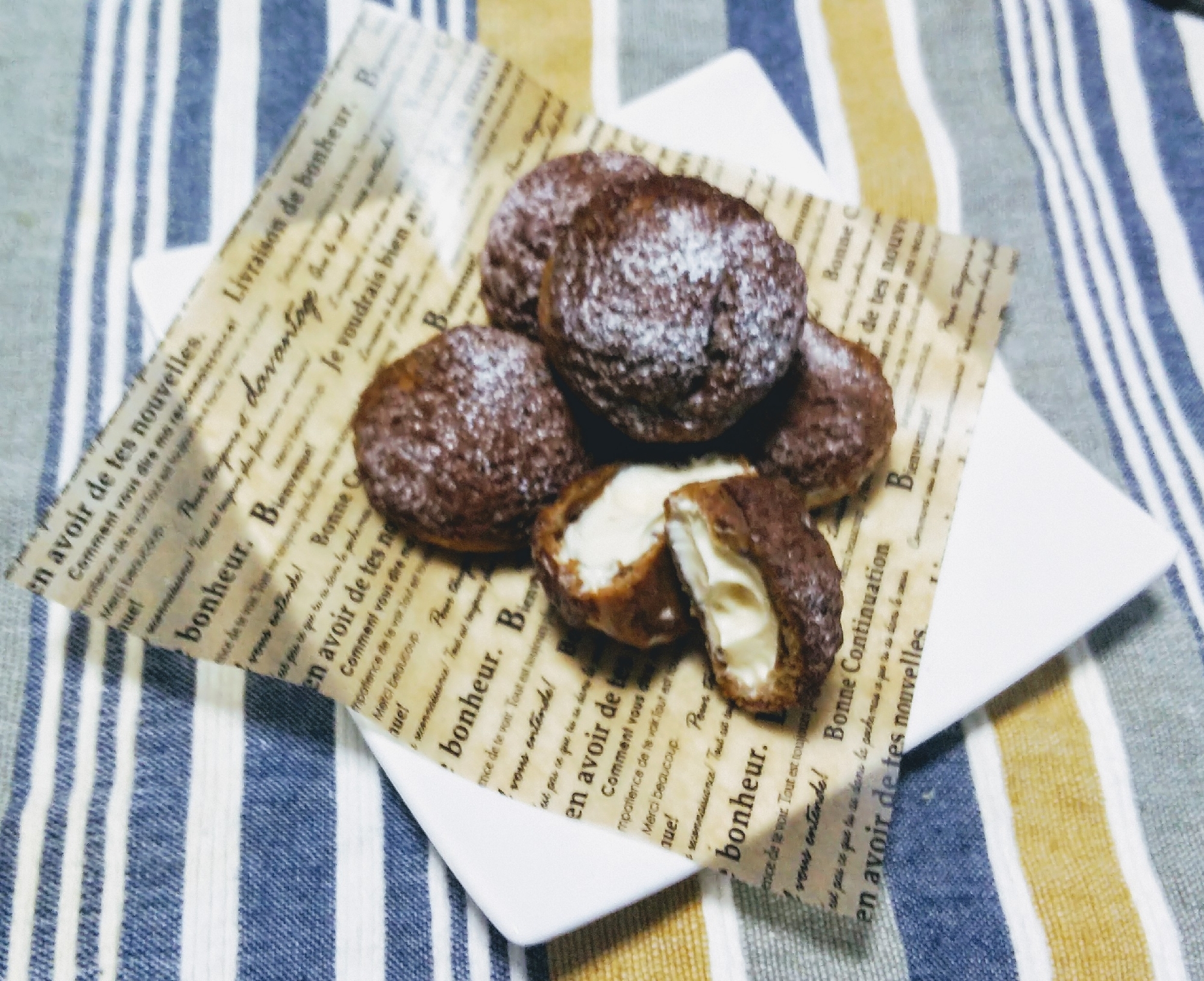 ティラミスをイメージした一口サイズのシュークリームです♡カリカリコーヒークッキーに包まれたまん丸シュー&チーズ入りクリーム♡ハマりますょ(^^)